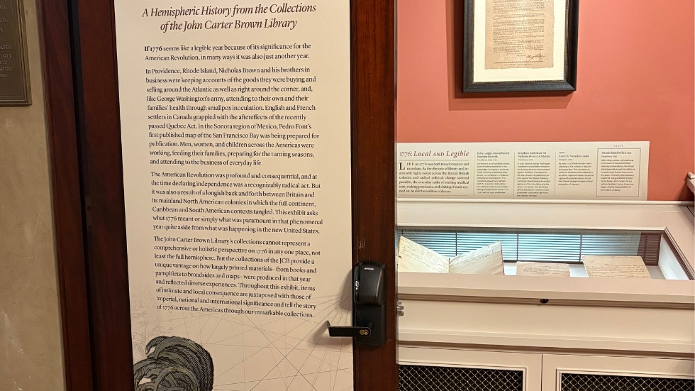 The John Carter Brown Library is hosting a year-long public exhibition titled, 1776 Across the Americas: A Hemispheric History from the Collections of the John Carter Brown Library, now on view in the Bromsen Room during Reading Room hours. Curated by Beatrice and Julio Mario Santo Domingo Director and Librarian Karin Wulf and JCB 2026 Postdoc Program Coordinator Kathleen Telling, the exhibition is part of the Library's “2026 and Beyond” initiative, which explores themes of democratic revolutions, freedom of religion, and how libraries shape historical knowledge.